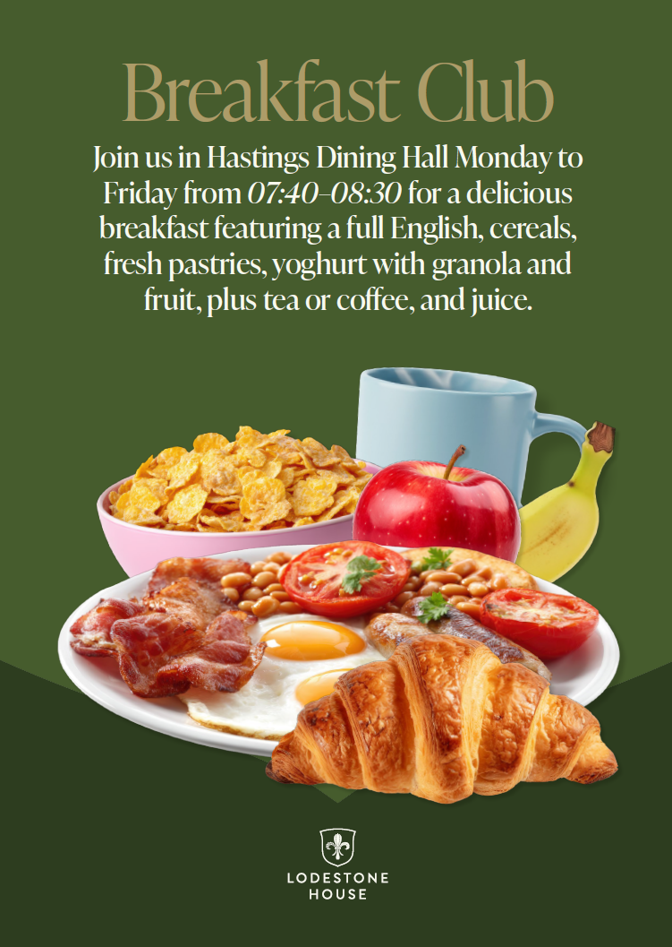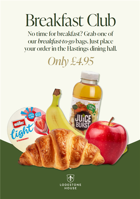 Breakfast, which is available for anyone, including parents with their children, to purchase )menu at the bottom of this page). Break for Senior students and Lunch service for all.